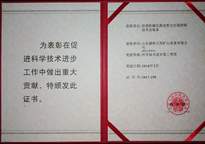 2018年2月《巖巷機(jī)械化掘進(jìn)粉塵污染控制技術(shù)及裝備》獲得國家教育部科學(xué)技術(shù)進(jìn)步二等獎(jiǎng)2018年2月《基于塵源分區(qū)局部封閉霧......詳細(xì)>>2017年山東省西部經(jīng)濟(jì)隆起帶和扶貧開發(fā)區(qū)域引進(jìn)...